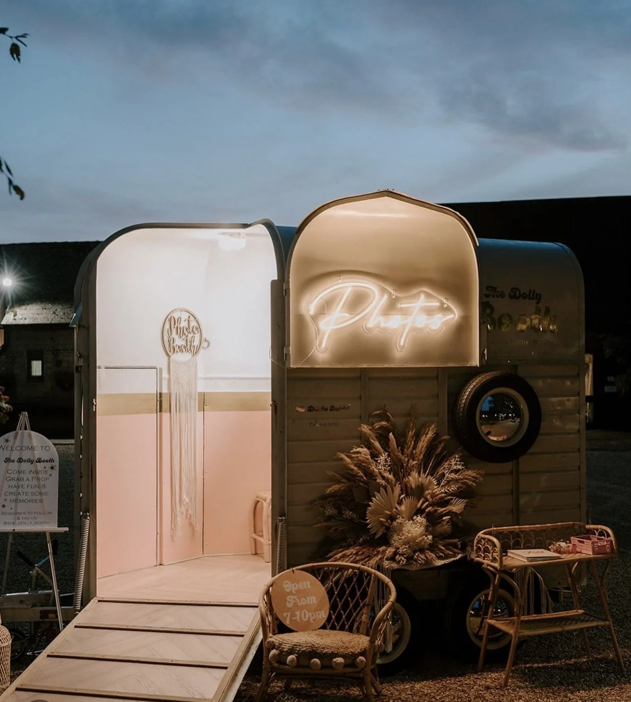 Our converted horsebox is not your average photo booth. Whether you're looking for quirky props, an elegant backdrop, or just a fun way to commemorate your special day, our horsebox photo booth adds an unforgettable touch to any occasion.